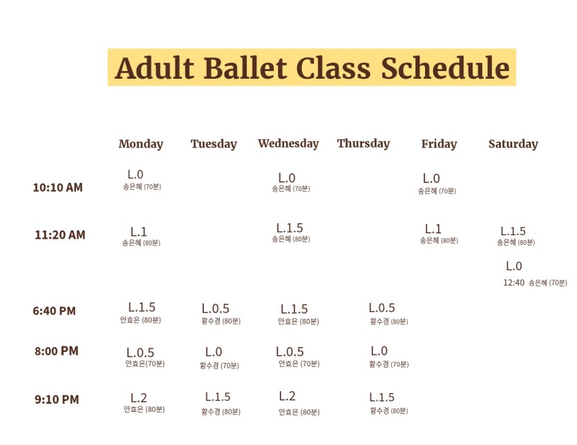 < 발레스테이지 성인 발레 수강 안내 >