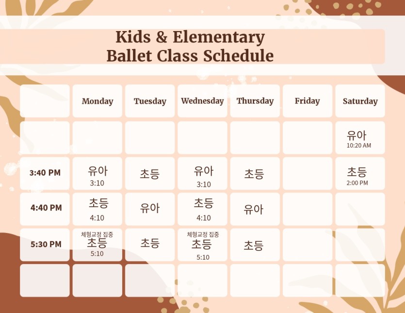 • 초등 발레반: 초등학교 1학년부터 6학년까지